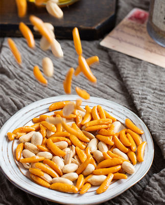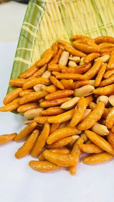 Tambahkan kacang ke dalam kerupuk nasi biji kesemek yang renyah.